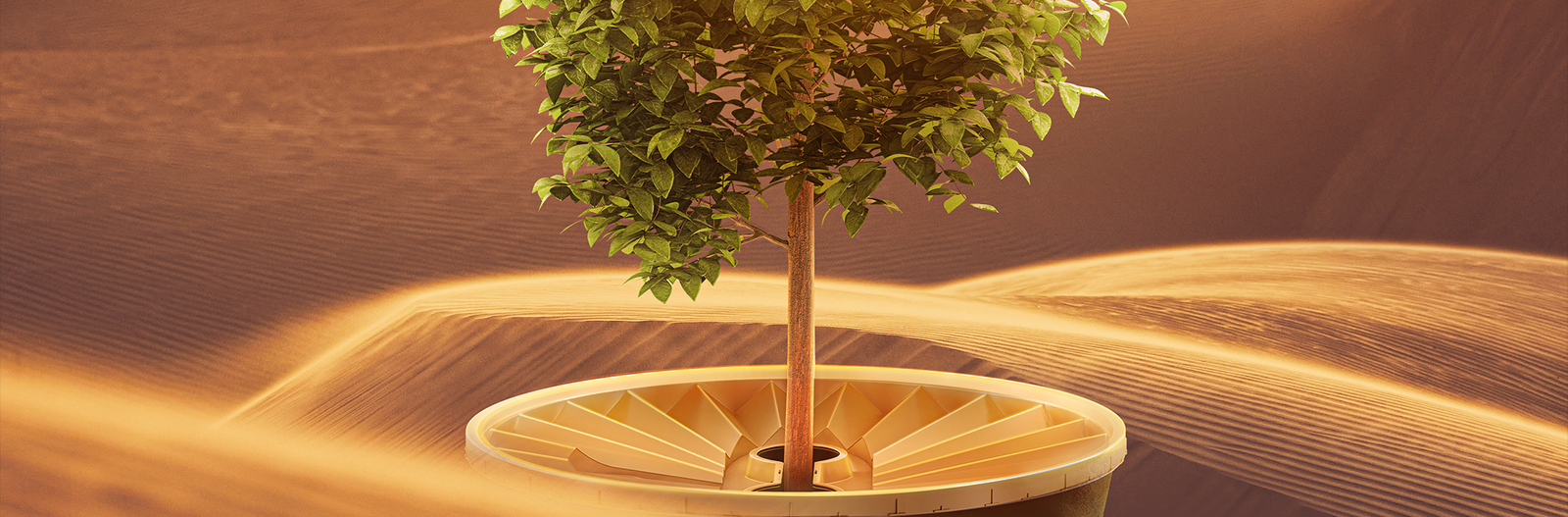 “ Qatarat® reduces the water use in agriculture and trees can be planted with less water. Qatarat® plant pot uses 90% less water and the trees that are planted with it have a survival rate of more than 90%! ”