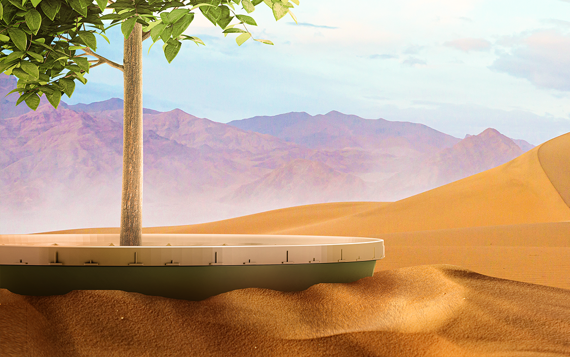 “ Qatarat® reduces the water use in agriculture and trees can be planted with less water. Qatarat® plant pot uses 90% less water and the trees that are planted with it have a survival rate of more than 90%! ”